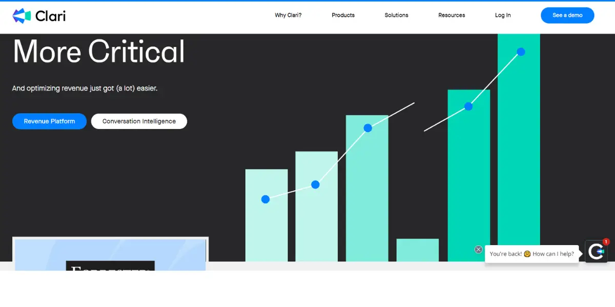 Clari is a sales enablement platform for present-day sales teams. It provides the sales reps with automatic and real-time forecasts and updates of apt sales content, tools, and insights based on data across regions, channels, and business lines.